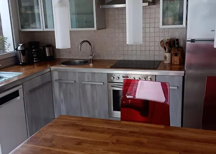 Los servicios de cocina de la villa incluyen un lavaplatos y un horno, proporcionados en un comedor al aire libre. Los huéspedes pueden disfrutar de la cena en el restaurante Restaurante Ca'n Bernat, situado a unos 5 minutos en coche. Situada a 300 metros, la estación de autobuses Cala Marcal ofrece opciones de transporte en las inmediaciones.